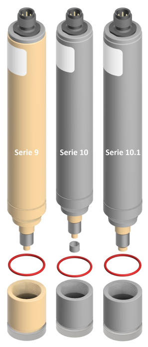 传感器的直径为25毫米。配备插头适配器连接的传感器长度为175 mm。4-20毫安型号的长度为220毫米。